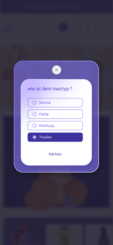Beim Online-Shopping, insbesondere in Kategorien wie Haut- und Haarpflegeprodukte, sind viele Nutzer oft überfordert und erleben eine hohe mentale Belastung. Zum Beispiel wissen viele nicht, welches Shampoo, welche Creme oder welches Produkt am besten zu ihrem Haut- oder Haartyp passt.Um dieses Problem zu lösen, wurde ein neues Feature namens „Intelligente Einkaufsempfehlung“ (Smart Shopping Assistant) entworfen. Diese Funktion erkennt durch ein paar einfache Fragen die Bedürfnisse des Nutzers und schlägt anschließend die am besten geeigneten Produkte basierend auf seinen persönlichen Eigenschaften vor.