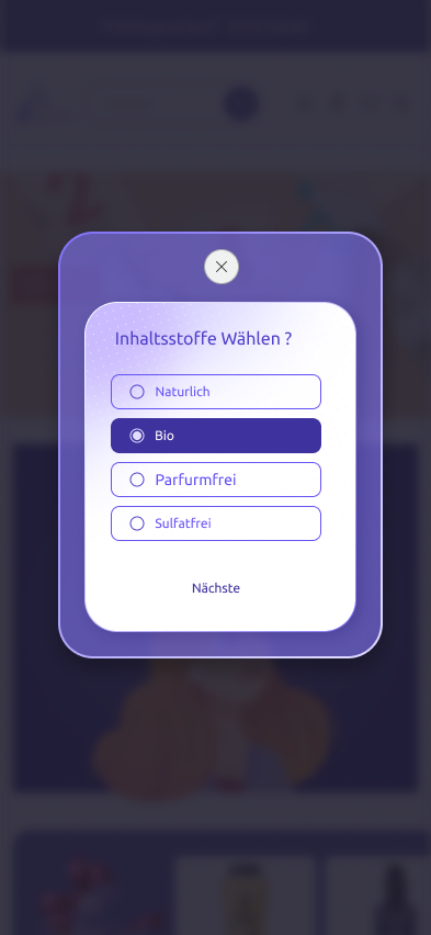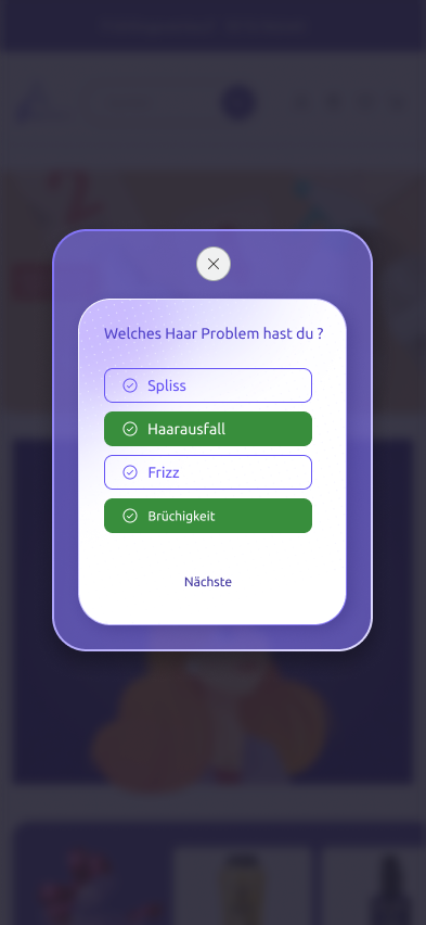 Entwicklung eines intelligenten Features, das durch einige einfache Fragen das am bestengeeignete Produkt für jeden Nutzer vorschlägt.